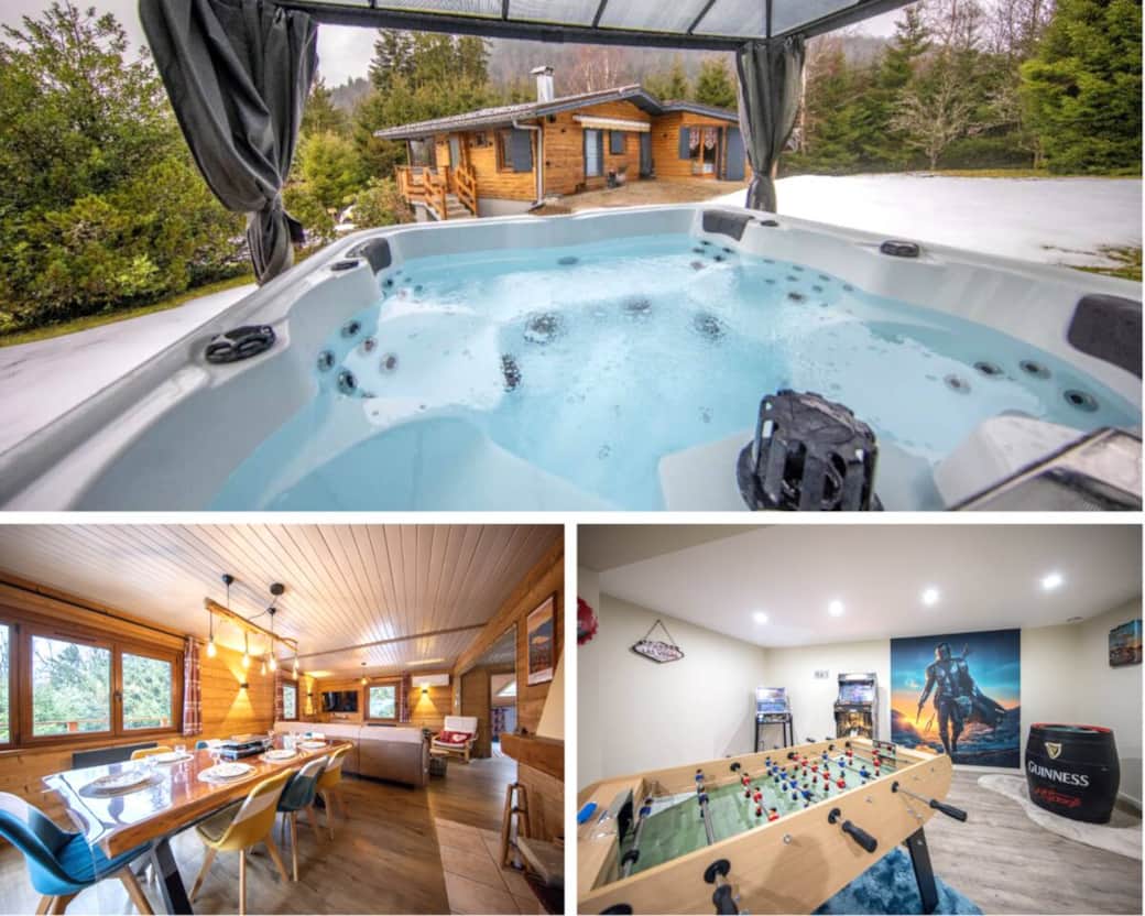 Bienvenue au Chalet des Belles Randonnées à Gérardmer : chalet rénové proche lac, randonnées, pistes de ski & commerces à proximité immédiate, sur grand terrain avec terrasse et parking privé. Détente assurée : jacuzzi 6 places. Fun garanti : table de ping-pong, babyfoot, borne d’arcade (500 jeux), jeux de cartes et flipper numérique ultra rare Pincab (200 tables). Idéal familles & amis.